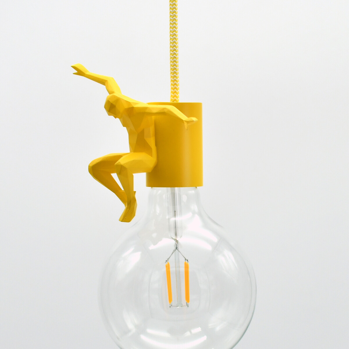 Sitzen, Klettern, Springen – bei HangOn schwingen sich dreidimensionale Figuren um den Leuchtkörper und lassen die Leuchte von jeder Seite ganz individuell erscheinen. Bei eingeschaltetem Licht erzeugen sie einen lebendigen Schatten im Raum – ähnlich wie bei tanzenden Menschen rund um ein Lagerfeuer. HangOn entstand als Kunstobjekt für das Kunsthaus Graz und in vielen verschiedenen Farben und Formen. Sie werden sowohl als Einzelobjekt sowie als Ensemble verwendet.