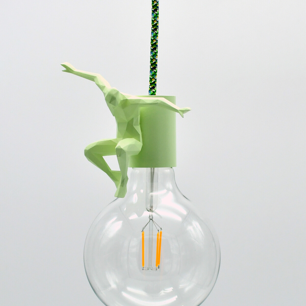 Sitzen, Klettern, Springen – bei HangOn schwingen sich dreidimensionale Figuren um den Leuchtkörper und lassen die Leuchte von jeder Seite ganz individuell erscheinen. Bei eingeschaltetem Licht erzeugen sie einen lebendigen Schatten im Raum – ähnlich wie bei tanzenden Menschen rund um ein Lagerfeuer. HangOn entstand als Kunstobjekt für das Kunsthaus Graz und in vielen verschiedenen Farben und Formen. Sie werden sowohl als Einzelobjekt sowie als Ensemble verwendet.