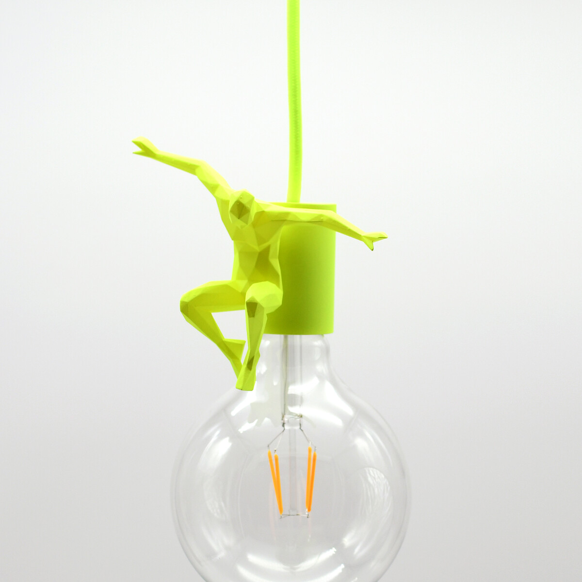 Sitzen, Klettern, Springen – bei HangOn schwingen sich dreidimensionale Figuren um den Leuchtkörper und lassen die Leuchte von jeder Seite ganz individuell erscheinen. Bei eingeschaltetem Licht erzeugen sie einen lebendigen Schatten im Raum – ähnlich wie bei tanzenden Menschen rund um ein Lagerfeuer. HangOn entstand als Kunstobjekt für das Kunsthaus Graz und in vielen verschiedenen Farben und Formen. Sie werden sowohl als Einzelobjekt sowie als Ensemble verwendet.