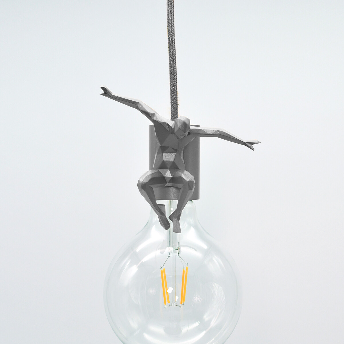 Sitzen, Klettern, Springen – bei HangOn schwingen sich dreidimensionale Figuren um den Leuchtkörper und lassen die Leuchte von jeder Seite ganz individuell erscheinen. Bei eingeschaltetem Licht erzeugen sie einen lebendigen Schatten im Raum – ähnlich wie bei tanzenden Menschen rund um ein Lagerfeuer. HangOn entstand als Kunstobjekt für das Kunsthaus Graz und in vielen verschiedenen Farben und Formen. Sie werden sowohl als Einzelobjekt sowie als Ensemble verwendet.