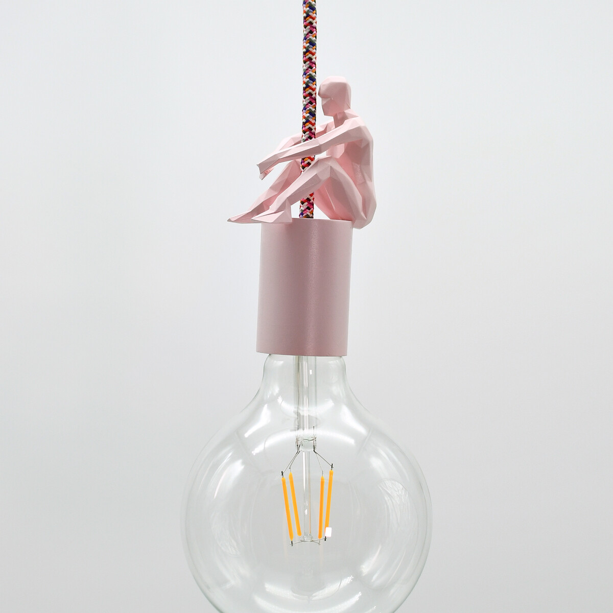 Sitzen, Klettern, Springen – bei HangOn schwingen sich dreidimensionale Figuren um den Leuchtkörper und lassen die Leuchte von jeder Seite ganz individuell erscheinen. Bei eingeschaltetem Licht erzeugen sie einen lebendigen Schatten im Raum – ähnlich wie bei tanzenden Menschen rund um ein Lagerfeuer. HangOn entstand als Kunstobjekt für das Kunsthaus Graz und in vielen verschiedenen Farben und Formen. Sie werden sowohl als Einzelobjekt sowie als Ensemble verwendet.