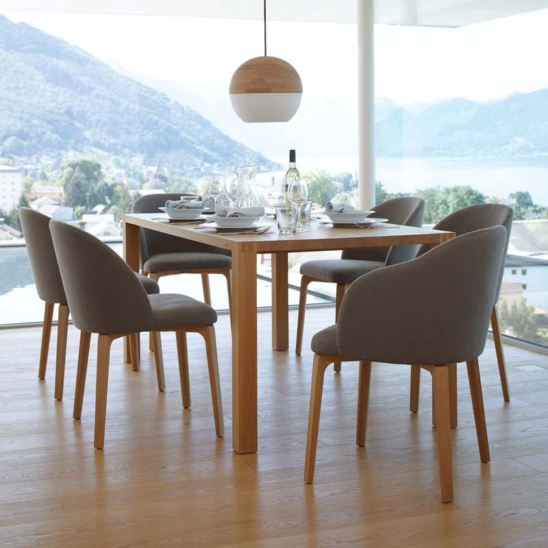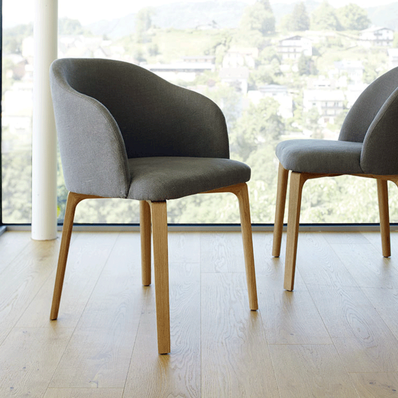 Belmont umfängt seinen „Besitzer“ geradezu und bietet außergewöhnlichen Komfort – für bequemes Sitzen, auch über einen langen Zeitraum. Die organisch geformte Sitzschale gibt Belmont einen sanften, harmonischen Schwung. Die sichtbare Trennnung zwischen kompaktem Sitz und leichtem Holzgestell schenkt dem Polsterstuhl optische Leichtigkeit.