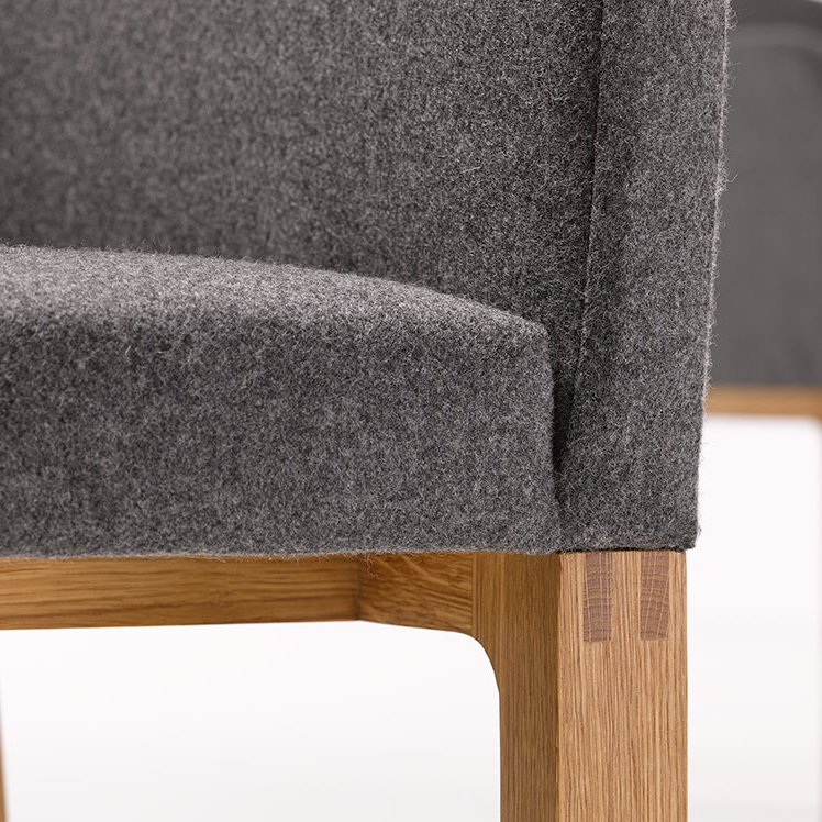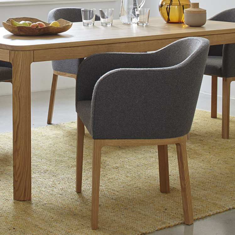 Der komfortable Dinner Chair lädt zum aufrechten, dennoch bequemen Sitzen ein – und könnte ein Grund sein, warum man nach dem Essen gern länger am Tisch verweilt. Auch als Bürostuhl bietet Hamilton hohen Komfort bei längerem Sitzen.