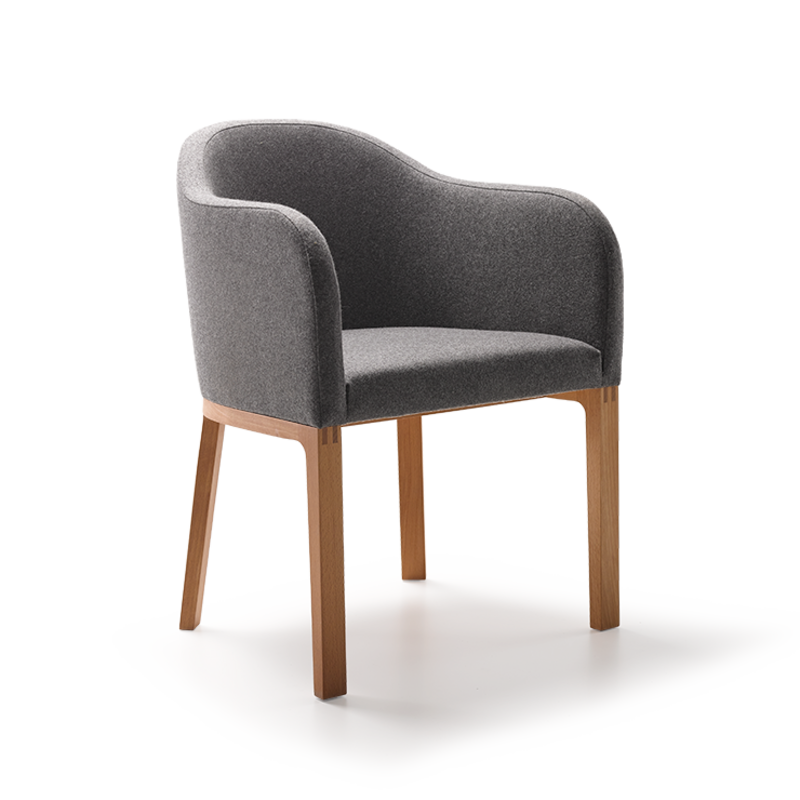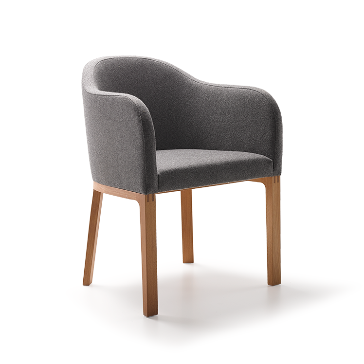 So schön kann Bequemlichkeit sein! Die schlichte, runde Form der schwungvoll durchgezogenen Rücken- und Armlehne verleiht dem Stuhl feine Eleganz.