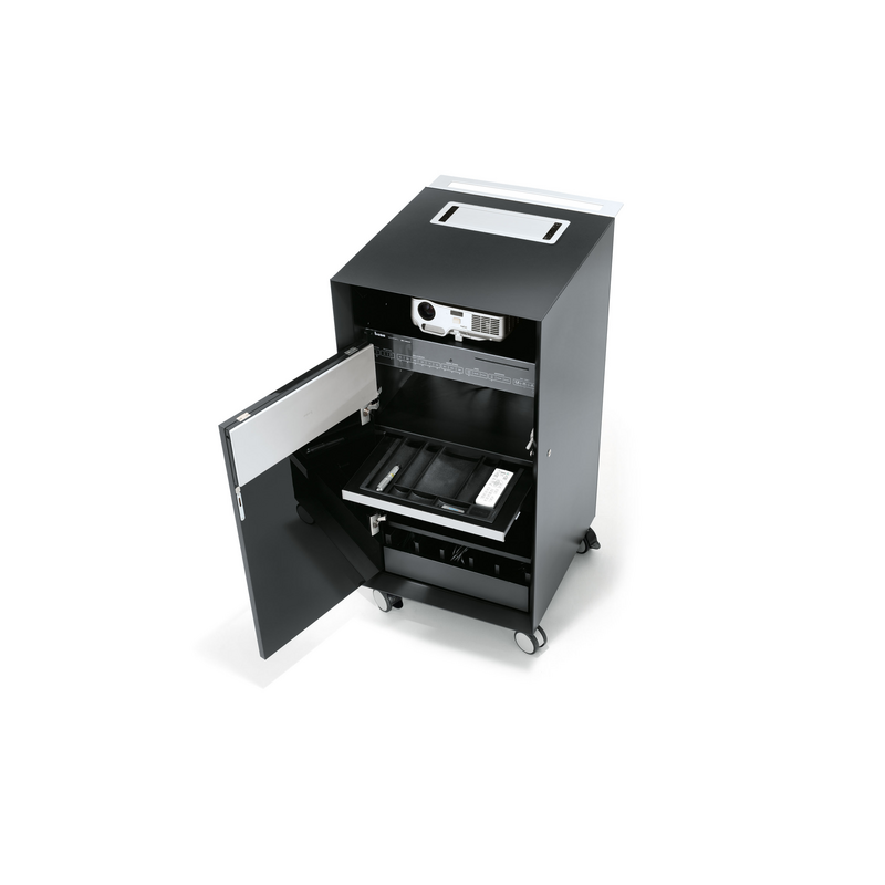 Der Media Caddy ermöglicht die mobile Verfügbarkeit eines kompletten, steckfertigen Präsentationssystems in einem Medienmöbel. Speziell für den Einsatz in kleinen bis mittelgroßen Besprechungsräumen, insbesondere für Workshop-, Seminar- und Schulungsräume.