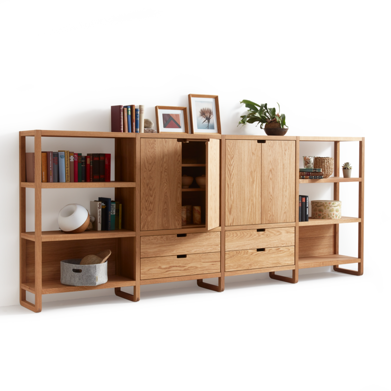 Das Regal Quint ist ein einfaches, funktionelles Regal, das seinen Charme dem Naturmaterial Holz und vielen Details verdankt. Im Büro, Wohnzimmer, Bibliothek oder Kinderzimmer bietet dieses elegante Vollholzmöbel ausreichend Platz für Ordner, Bücher oder Spielzeug. In 17 Varianten als Empfehlung oder frei gestaltet nach Ihren individuellen Vorstellungen bringt das Regal Quint mit Fachbrettern, Türen- und Schubladenelementen seinen vielseitigen, natürlichen Charme in das Zuhause.