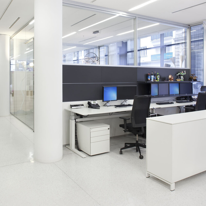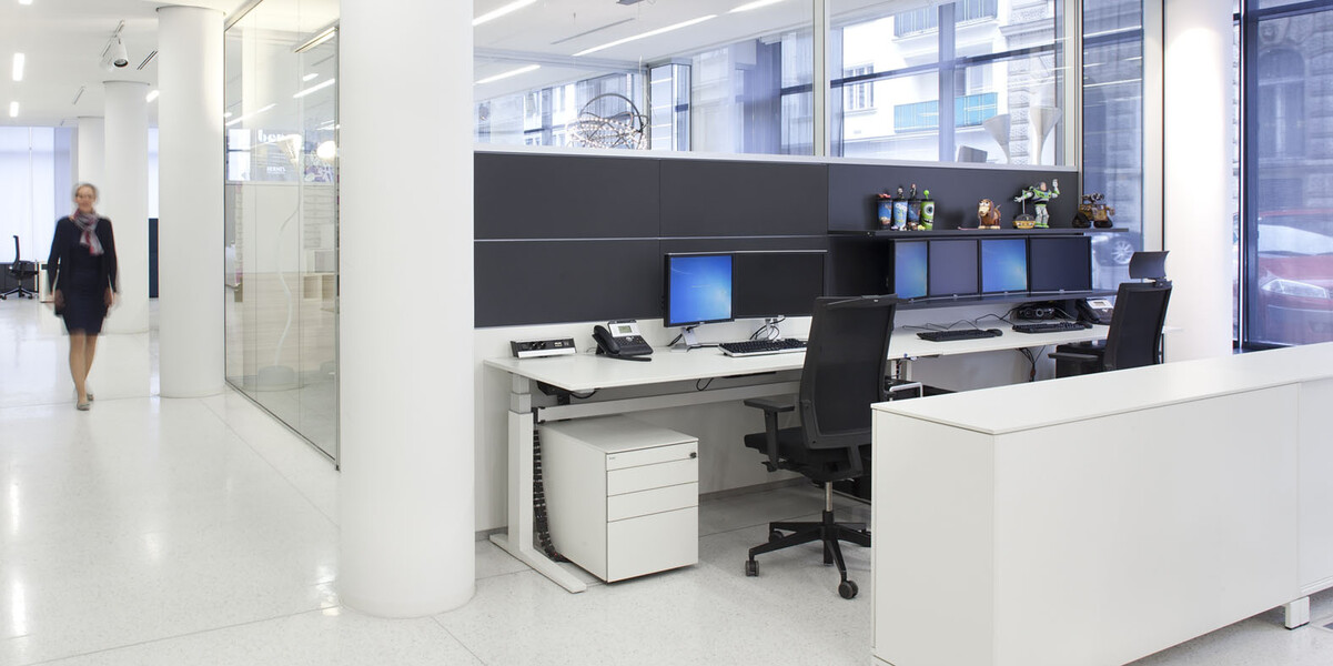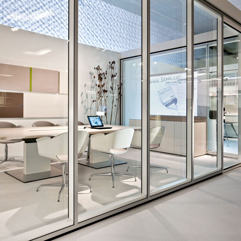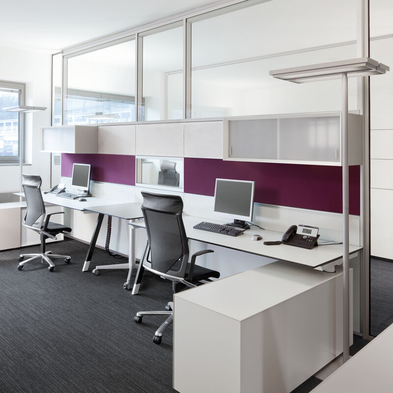 Eine Vielzahl technischer Features bildet die perfekte Basis für die R-Plattform von Bene: drei akustische Ausführungs-Varianten, individuell wählbare Fugenhöhen, komfortable Elektrifizierung, die Integration von Gipswänden und die Aufnahme von Bautoleranzen (+/- 25 mm) und Deckenbewegungen (bis 10 mm).