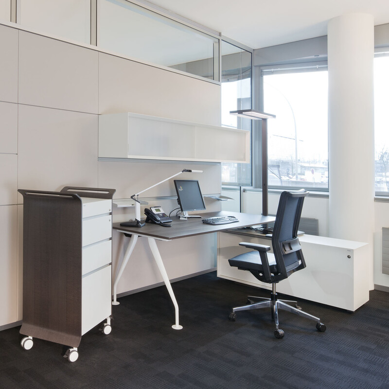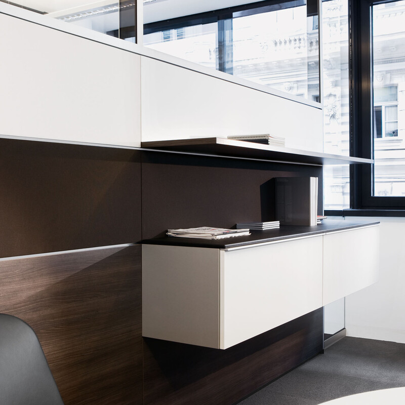 Als Bürowand bildet sie akustisch und visuell abgeschirmte Bereiche. Sie lässt sich beidseitig unterschiedlich gestalten und organisieren und erlaubt die Integration einer Vielzahl an unterschiedlichen Organisations- und Stauraumelementen. Als Flurwand ermöglicht sie durch verschiedene Paneel-Kombinationen abgestufte Grade der Transparenz.