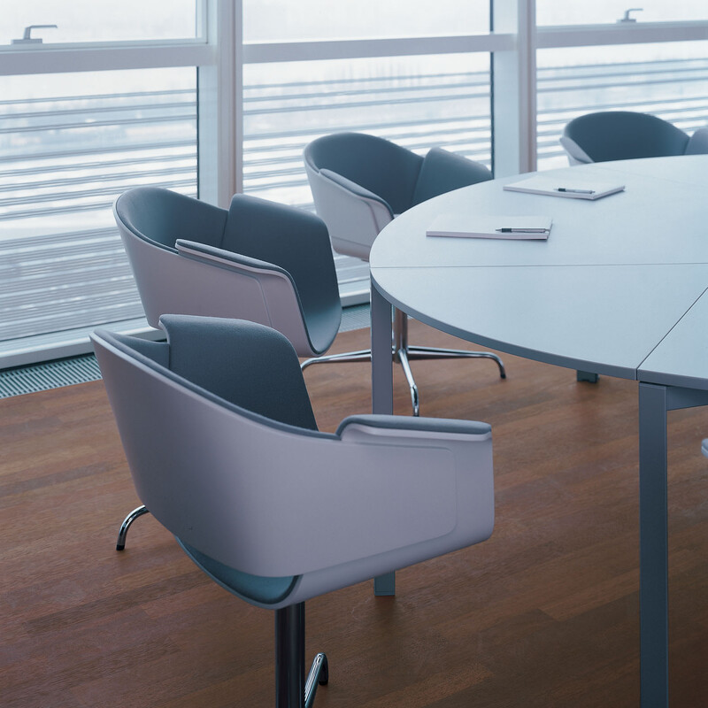 Ein Stuhl, der umhüllt, schützt und hohen Sitzkomfort schenkt. Für unterschiedliche Zonen und Bereiche: Konferenz, Besprechung, Wartebereich, Cafeteria, Restaurant und Lounge. Oder sogar für zu Hause. Als Vierfuß oder mit Vierstern-Drehkreuz.