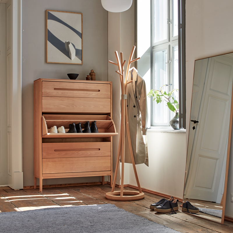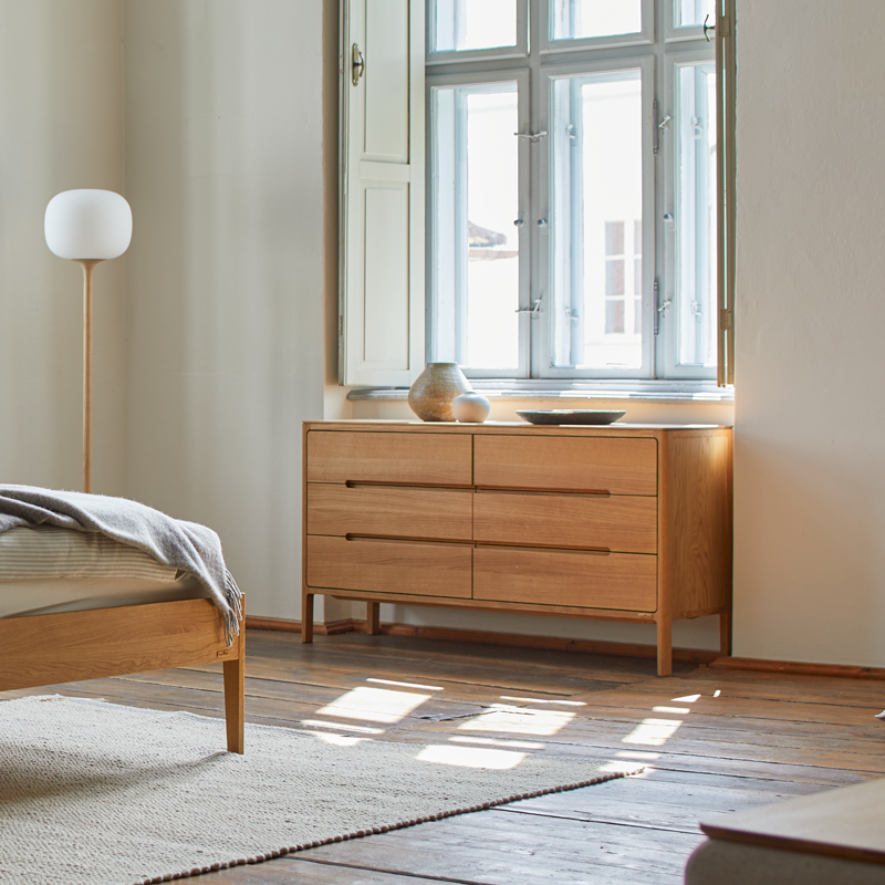 Die Stauraumserie Tenso besteht aus 13 Schrankmodellen für alle Wohnbereiche. Tenso beeindruckt mit schlichten, aber eleganten Formen, klarer Linienführung und einer fast zarten, finessenreichen Anmutung. Dazu: Sanft gerundete Ecken, Kanten und Übergänge, auf ein funktionelles Minimum reduzierte Holzdimensionen, feine, die Front gliedernde Schattenfugen.