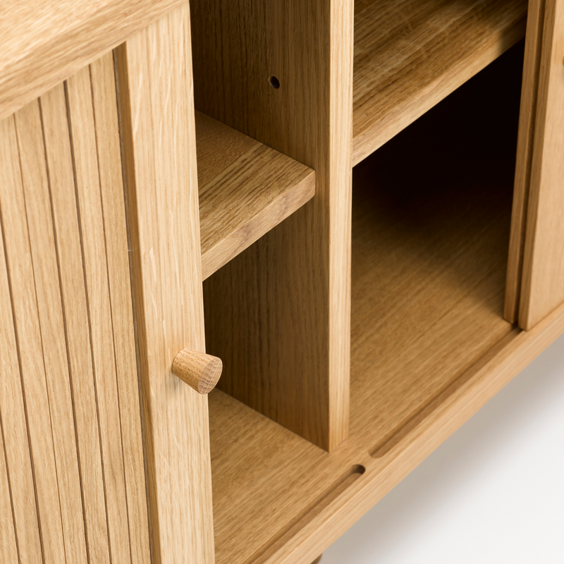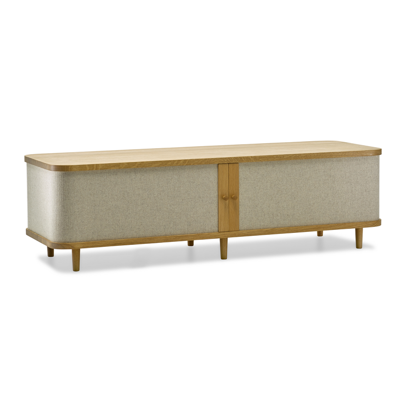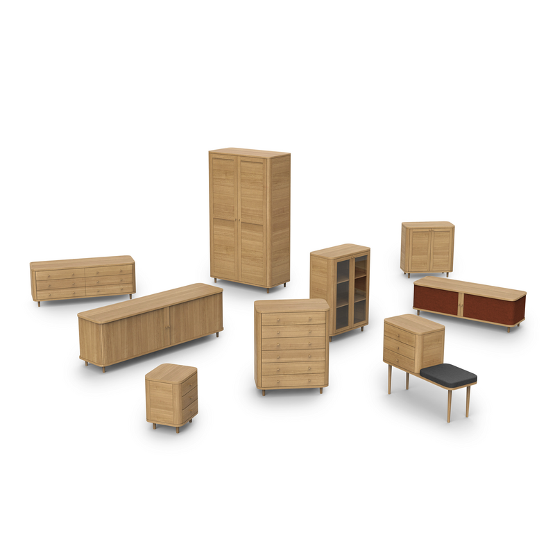 Vom Ladenschrank über das Sideboard zum beinahe in Vergessenheit geratenen Rolloschrank: Tonda ist eine Kollektion aus Möbeln die jeweils einzeln für sich stehen können, dennoch signifikante Gemeinsamkeiten haben – den samtweichen Schwung der Ecken und Kanten, sowie jene organisch-skulturale Formen, die an das elegante italienische „Bel Design“ der 1950er-Jahre erinnern.