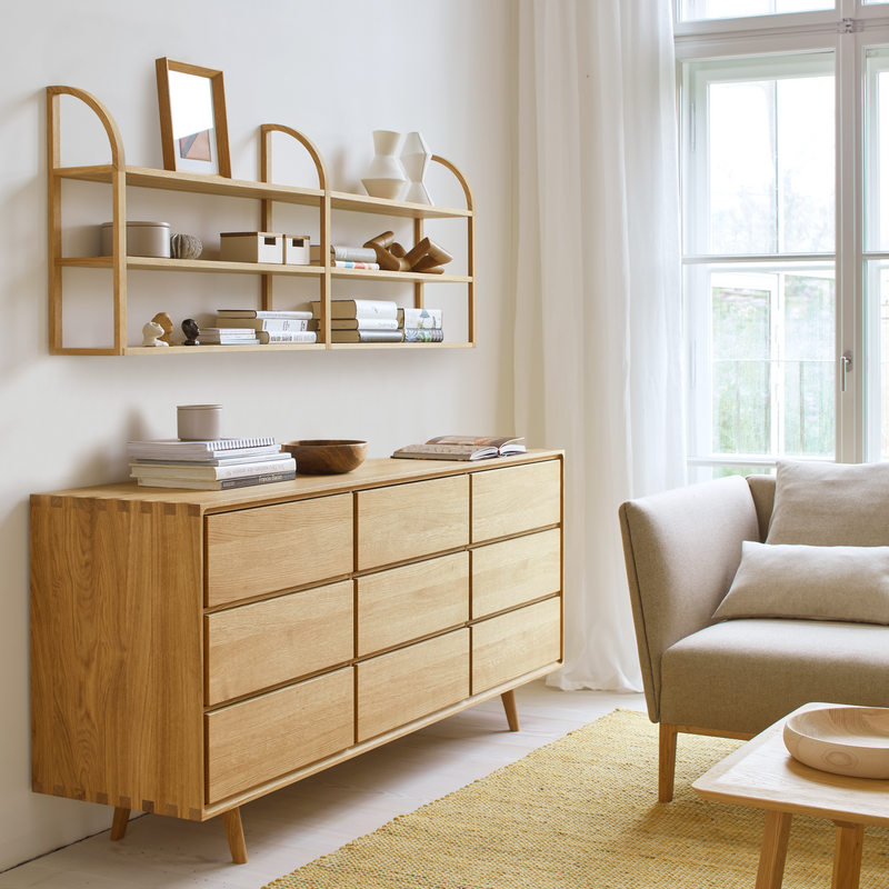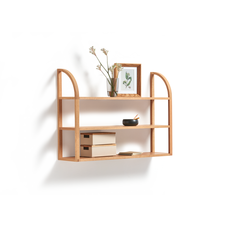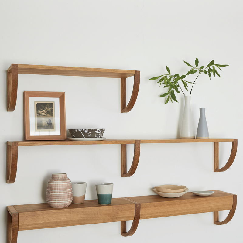 Ein ebenso elegantes wie funktionelles Wandregal für alle Wohnräume bis hin zur Garderobe, zum Ablegen und Abstellen oder als Bücherregal.