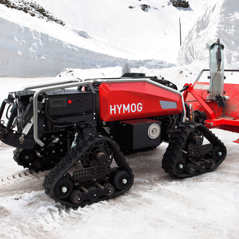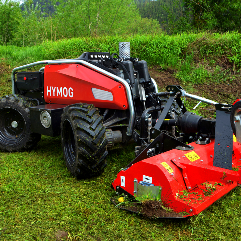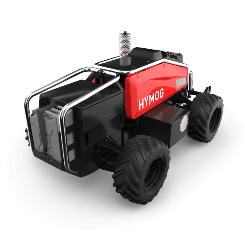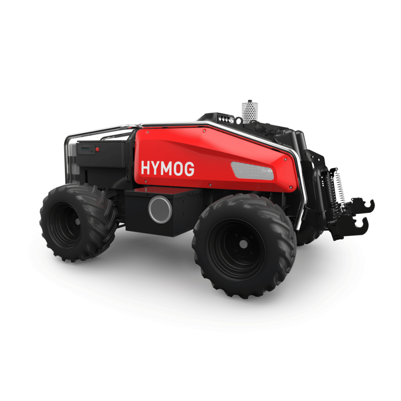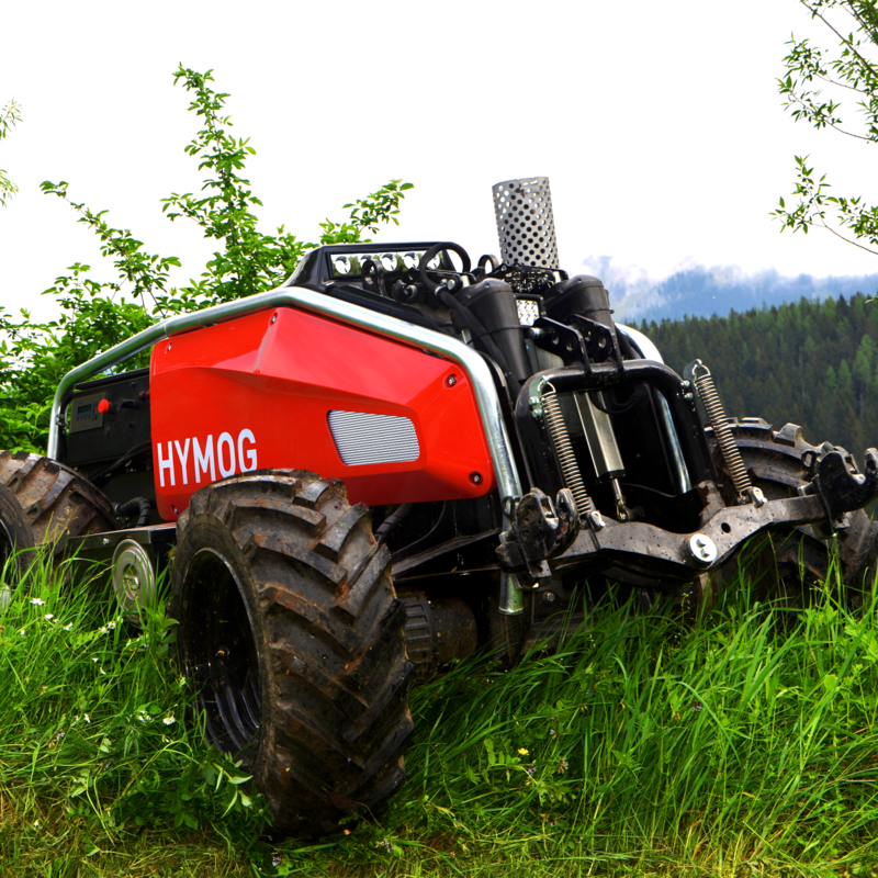 PTH Hymog ist ein hybridbetriebener Geräteträger für den Anbau landwirtschaftlicher Arbeitsgeräte. Der HYMOG ist komplett funk-ferngesteuert, mit elektrischem Fahrantrieb und einem Verbrennungsmotor für den Betrieb der Anbaugeräte.