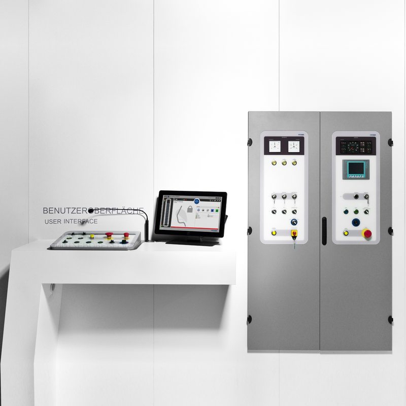 Da die meisten Arbeitsvorgänge via Screen erfolgen, bildete das Screendesign den Ausgangspunkt des Projekts. Die entwickelten gestalterischen Merkmale wurden für Pult und Säule dreidimensional abgeleitet.
