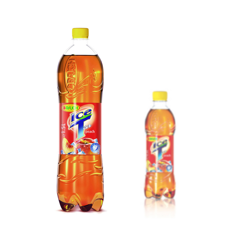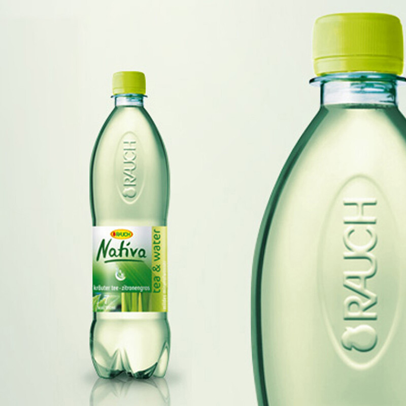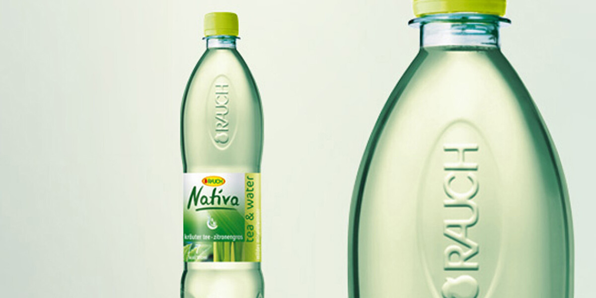 Auf der Ebene der Markenidentität geht die Rauch auch bei den PET-Flasche einen konsequenten Weg. Sie korrespondieren mit der Rauch Glasflasche und dem Rauch Gastronomieglas: Die taillierte Form, die für eine klare und harmonische Linienführung sorgt, leitet sich vom Logo des Produzenten, der "Rauch-Ellipse" ab. Die zusätzliche Prägung des Logos im optischen Schwerpunkt der PET-Flasche lässt die Marke zu einer haptischen, ertastbaren Erfahrung werden.
