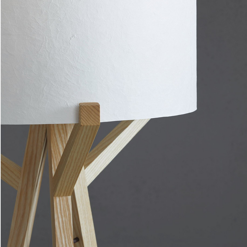 Die drei schlanken, grazil wirkenden, dabei sehr solide in Vollholz ausgeführten Leuchtenbeine laufen nach oben hin zusammen. Dort strecken sich drei Arme aus und halten den kreisrunden Leuchtenschirm. Der durchscheinende, sanftes Licht werfende Schirm ist aus handgeschöpftem, zart strukturiertem Japan-Papier gefertigt und mag mit etwas Abstraktionsvermögen an die Form eines Bienenkorbes erinnern (ital. arnia). Die Kombination der Naturmaterialien Holz und Papier schafft ein behagliches Wohnambiente und erfüllt den Raum mit warmem Licht.