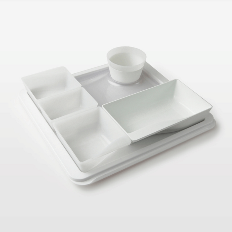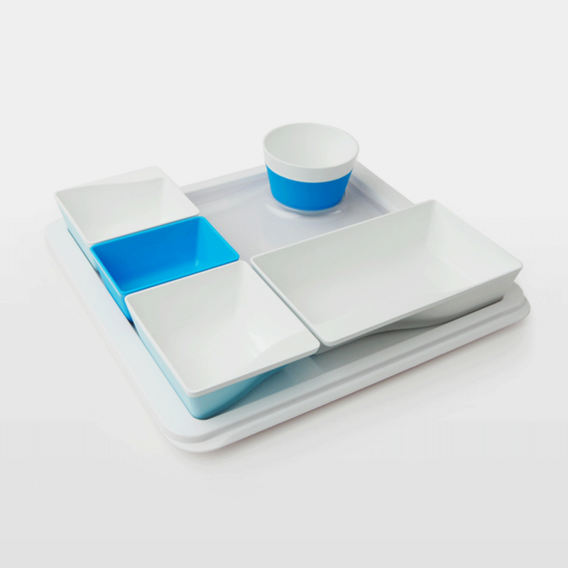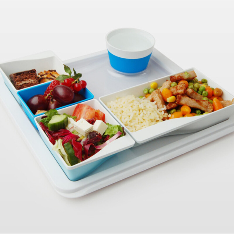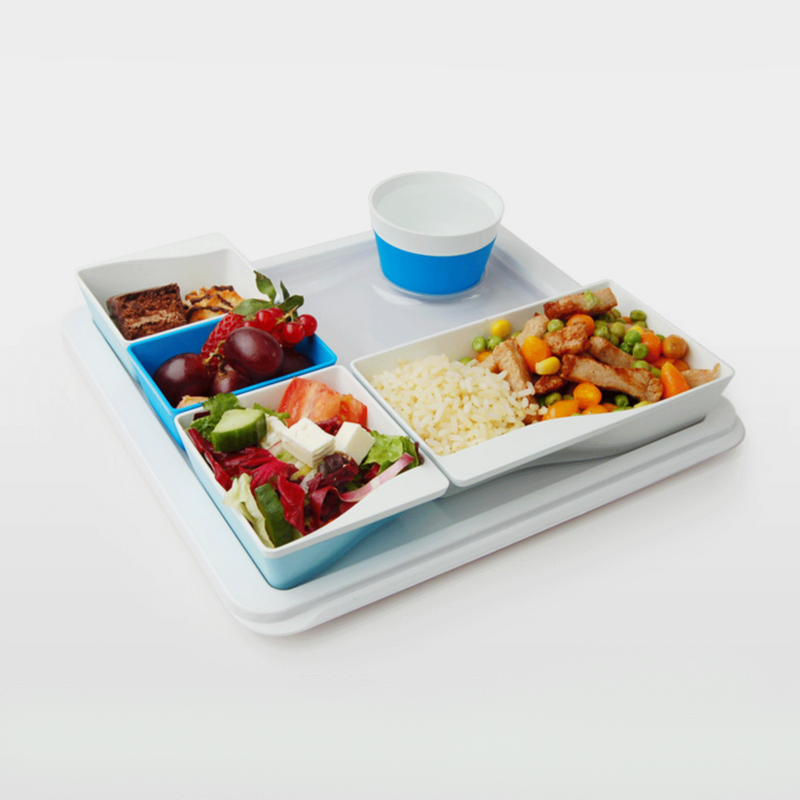 Die Entwürfe für das funktionale Bordgeschirr für die Economy Class der Lufthansa (LSG Sky Chefs) wurde in zwei Varianten erarbeitet: eine Einweglösung aus Kunststoff, bestehend aus Speiseschale, Beilagenschalen, Becher und Besteck, sowie eine Mehrweglösung mit wiederverwendbarem Besteck. Die einzelnen Elemente sind an die Lufthansa Atlas-Norm angepasst.