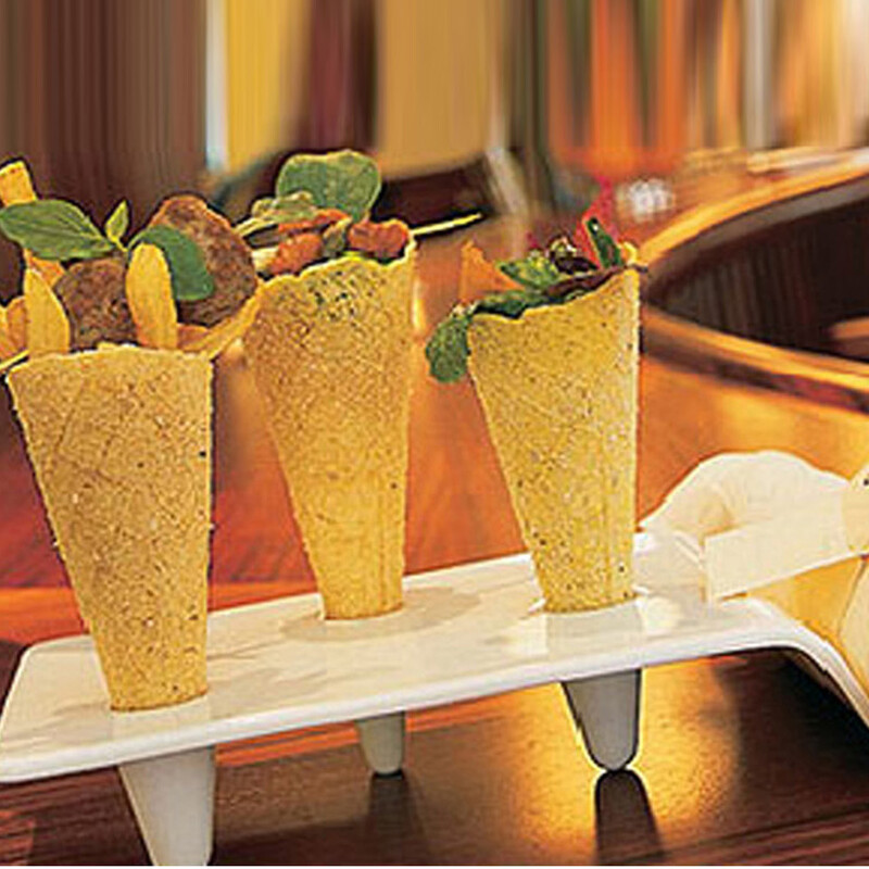 Die Produkte von Carpe Diem stehen für Wellness auf höchstem Niveau und entspannte Eleganz. Der Waffelteller aus Knochenporzellan wurde eigens für das exklusive Carpe Diem Lokal "Finest Fingerfood" in der Salzburger Getreidegasse entworfen. Die "Cones", Waffeln mit köstlichem Fingerfood, werden auf dem Teller formschön präsentiert und gleichzeitig serviert.