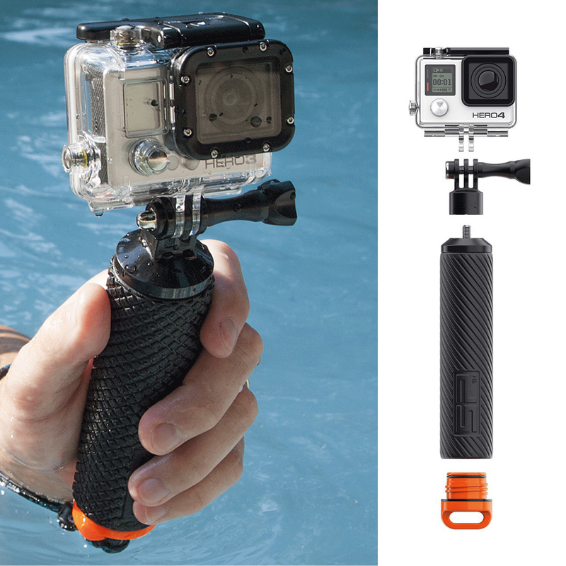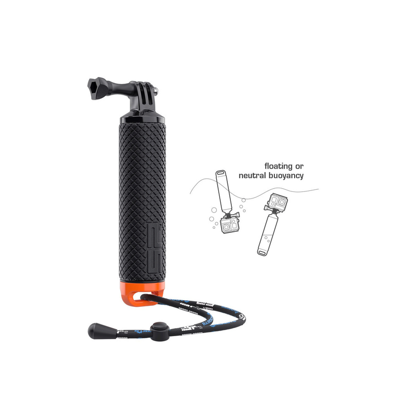 Der SP Gadgets Dive Buoy ist ein idealer Begleiter bei allen Wassersportarten. Die Action-Kamera bleibt immer unter Kontrolle, egal ob man am oder unter Wasser shooten möchte. Für den richtigen Auftrieb unter Wasser, befüllt man einfach den Griff mit Wasser oder lässt ihn leer, damit die Kamera im Wasser schwimmt. Der Hohlraum dient auch als wasserdichtes Fach und wird mit der orangen Kappe verschraubt. Diese Kappe ist zugleich markantes und funktionales Designelement, das einige Produkte aus der SP Gadget Familie verbindet.
