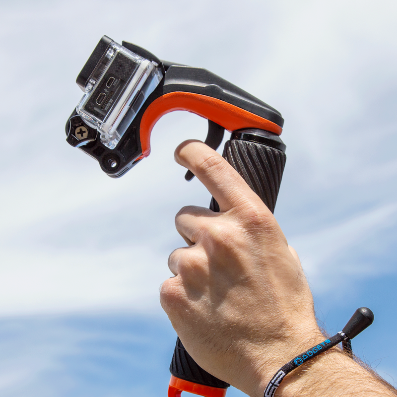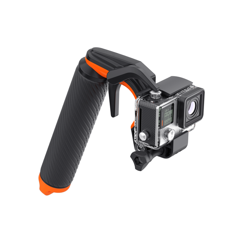 Der perfekte Grip für den perfekten Shoot: Mit dem SP Gadgets Section Pistol Trigger Set hat man die totale Kontrolle über die Aufnahme, egal ob auf, unter oder über dem Wasser. Die Hand bleibt ruhig und die Aufnahme stabil. Der Griff schwimmt und kann auch für Tauchgänge mit Wasser befüllt werden.