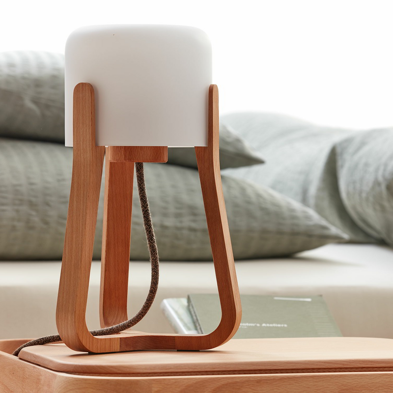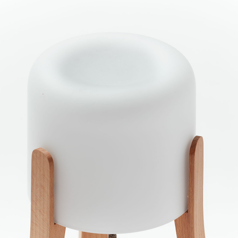 Torasu erinnert an einen leuchtenden Edelstein in seiner Fassung: Ein leichtfüßiges, schlankes Dreibein aus Massivholz, unten kufenartig gebogen, trägt einen zylinderförmigen, optisch weich verrundeten Leuchtenschirm aus Opalglas. You only live once. Daher die Frage: Steh- oder Tischleuchte?